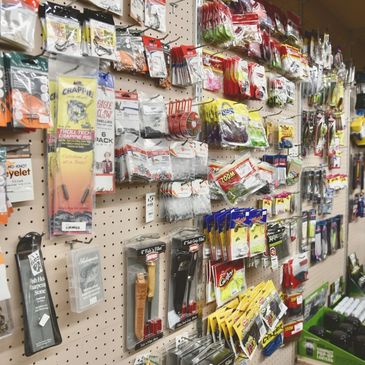 We carry a large selection of lures, lines, and rods to land that bass or crappie.